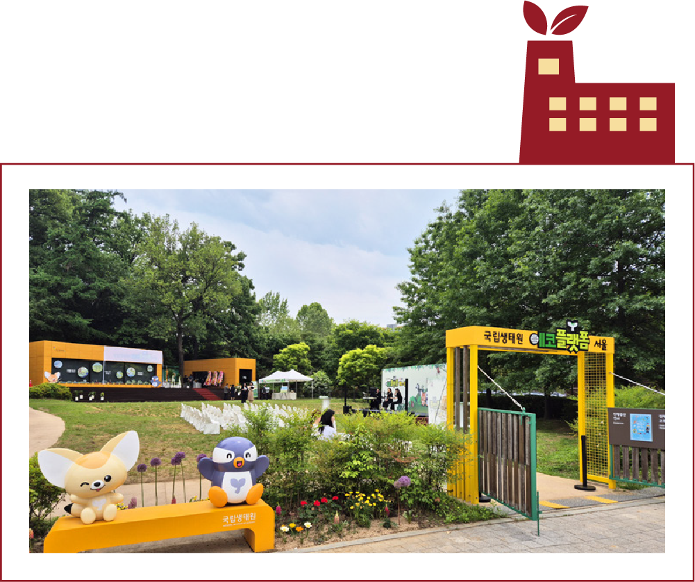 국립생태원은 지역 거점을 중심으로 생태 가치를 전국으로 확산하고 있다. 서울어린이대공원 내 ‘국립생태원 에코플랫폼 서울’에서는 ‘명화로 만나는 생태’ 전시와 도심 생태교육 프로그램을 운영하며 시민에게 자연의 소중함을 전하고 있다. 세종호수공원 내 ‘에코플랫폼 세종’은 세계 명화 속 동물 이미지를 활용한 전시와 수족관, 음성 해설 시스템 등을 갖춘 복합 생태문화공간으로 자리 잡았다.