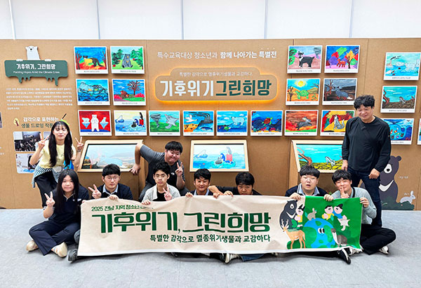 국립호남권생물자원관이 마련한 특별전 「기후위기, 그린희망」은 기후위기 시대에 멸종위기 생물과 교감하며 생물다양성의 의미를 체험하는 참여형 전시다. 전시장에는 목포제일여고, 함평학다리고, 해남공고 특수학급 학생들이 직접 만든 작품이 전시됐다. AI 모션 기술이 더해진 작품 속 생물들은 살아 움직이듯 표현돼 관람객의 감각을 자극했다. 9월 18일 열린 개막식에는 작품을 만든 학생들이 직접 참여해 자신의 작품을 소개하고 샌드아트를 감상했다. ‘나의 상상이 전시가 되는 순간’을 경험한 학생들은 전시의 주인공이 됐다. 이번 전시는 9월 부산 벡스코 「2025 탄소중립 EXPO」에서 첫 선을 보이며 1,954명의 관람객을 맞았다. 관람객들은 “기후변화가 이렇게 피부에 와닿을 줄 몰랐다”며 깊은 인상을 전했다. 이후 전시는 전남 담양 국립정원문화원(2025.10.14.~2025.10.31.)과 전남 장성 전라남도 교육청 자연탐구원(2025.11.1.~2026.1.31.)으로 이어졌다. 2026년에는 전국 순회 전시로 확대될 예정이다. ‘그린(Green)’은 자연과 환경, ‘희망(Hope)’은 우리의 실천을 뜻한다. 청소년들이 만든 작품은 기후위기를 바라보는 특별한 감각이자 미래 세대를 향한 메시지다. 국립호남권생물자원관은 앞으로도 국민과 함께 기후위기를 이야기하고 실천하는 전시를 이어갈 계획이다.