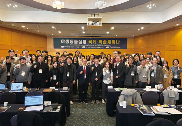 국립야생동물질병관리원은 야생동물 질병 대응체계 고도화와 국제 공조 강화 방안을 논의하기 위해 지난 11월 27일부터 이틀간 켄싱턴리조트(제주 서귀포 소재)에서 ‘야생동물질병 국제 학술토론회(세미나)’를 개최했다. 이번 행사는 야생동물, 사람, 가축 간 질병 전파를 차단하고 신종 감염병에 대한 대응 역량을 강화하기 위해 마련된 국제 토론회로 국내 전문가뿐만 아니라 베트남과 일본의 전문가들도 참여했다. 이날 행사에서는 르반판(Le Van Phan) 베트남 국립 농업대 교수가 2019년부터 2025년까지 베트남에서 발생한 아프리카돼지열병(ASF) 및 진드기 매개 바이러스 등의 현황과 대응 체계에 대해 발표했다. 시모다 히로시(Shimoda Hiroshi) 야마구치 대학 교수 등 일본측 전문가 3명은 △다양한 야생동물에서의 바이러스 검출 연구, △일본에서의 돼지열병(CSF) 발생 현황 및 미끼백신 효과 분석 △진드기 매개 바이러스가 진드기 개체군에 미치는 영향분석 등 최신 연구 성과를 공유했다. 또한 국립야생동물질병관리원이 지원하는 야생동물질병 특성화대학원(강원대, 서울대, 전북대, 충북대)에 참여 중인 대학원생들의 연구 성과도 소개되어 전문가 양성과 연구 기반 확충의 장이 되었다. 이번 국제 학술토론회는 아시아 지역의 야생동물질병 전문가들이 함께 해결책을 모색하며 국가 방역 역량 향상과 국제 공동대응 체계를 다지는 시간이었다.